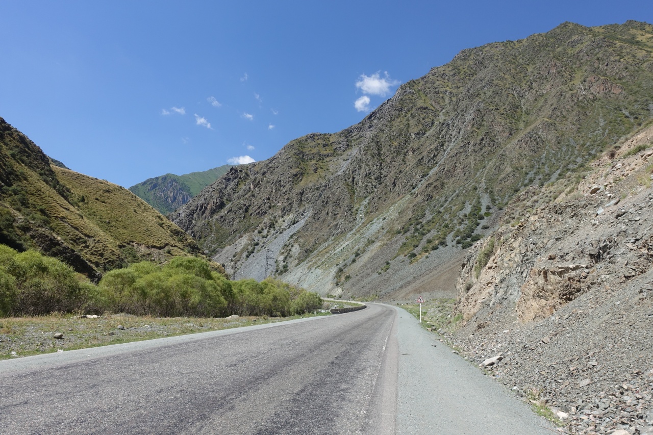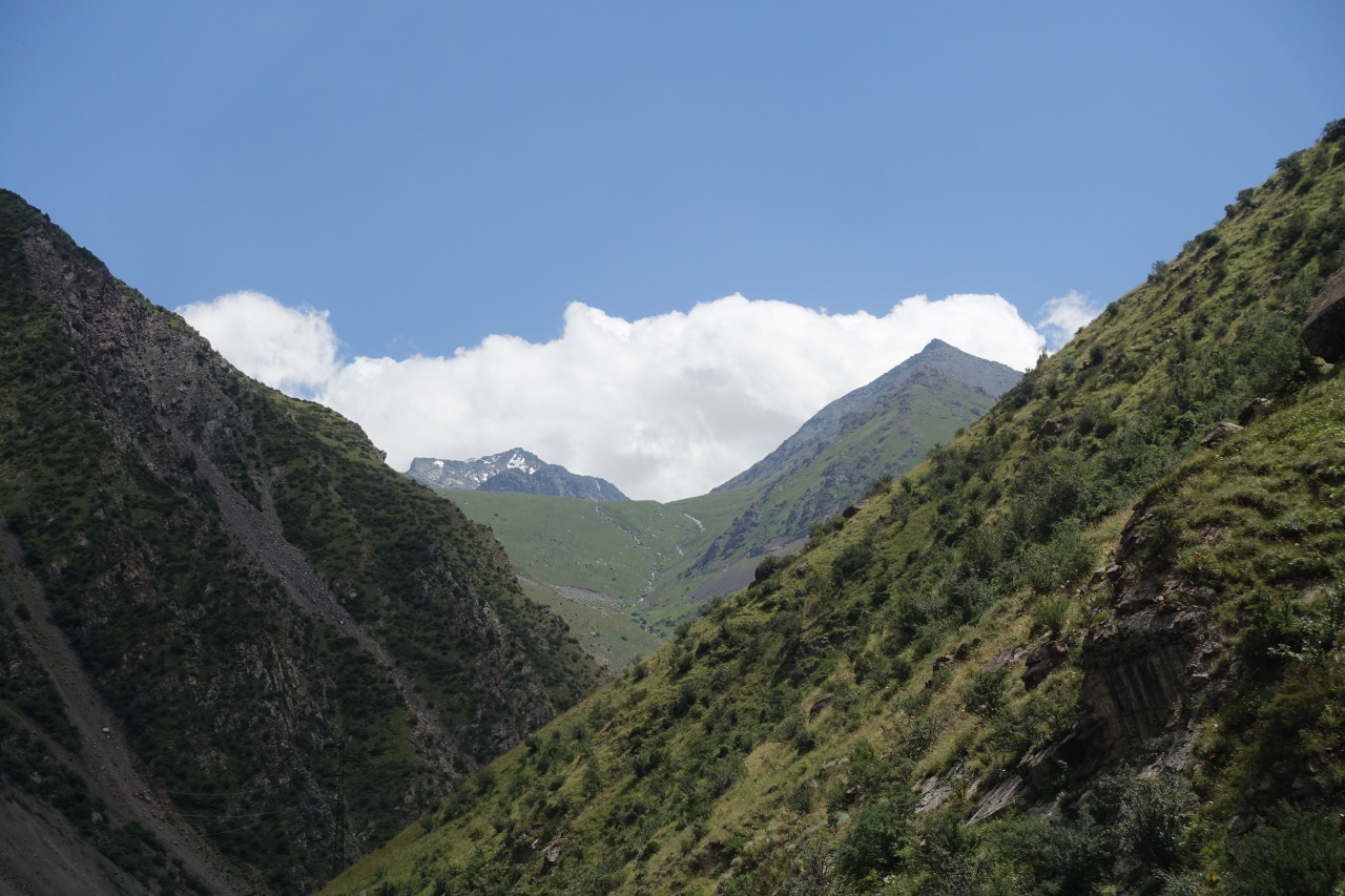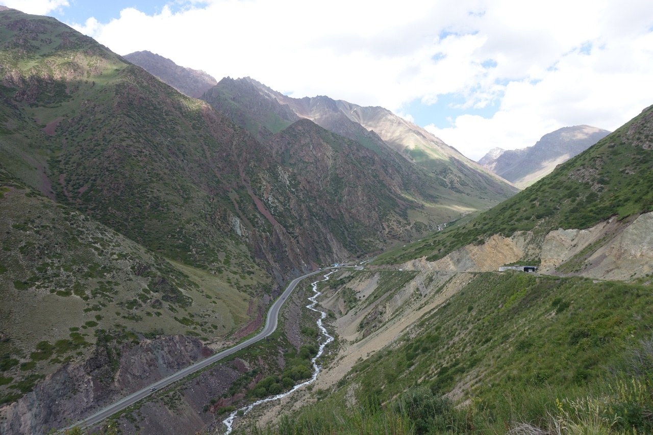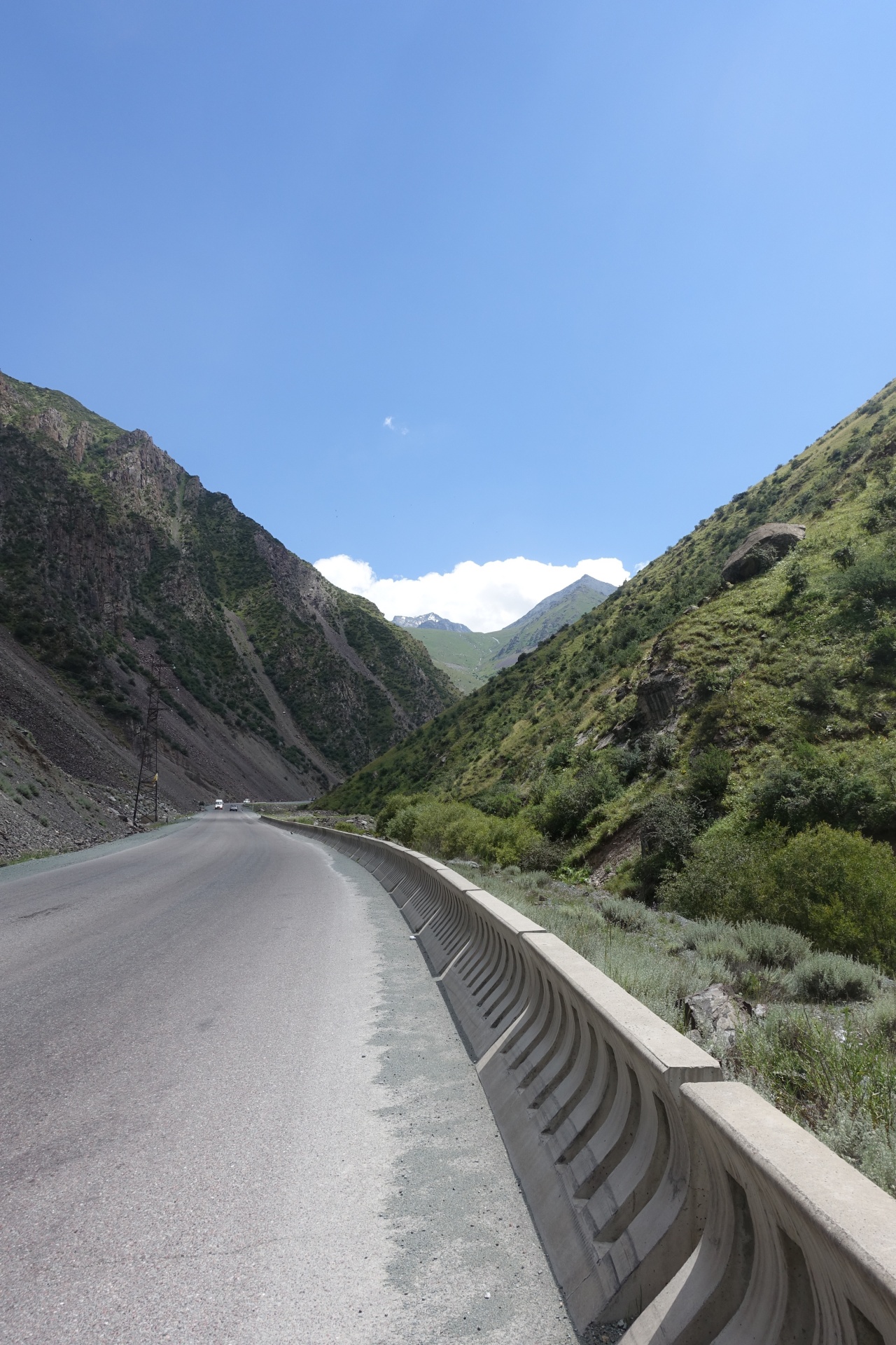 쉬며 걸어가며를 수십번. 2400m 정도 올랐을 때 휴게소같은 가게가 있어, 먹을 것을 보충했다. 주인 할아버지는 나에게 보드카를 권했지만 급구 사양했다. 고도가 올라 갈수록 8자도로와 산 중턱을 깎아만든 짧은 구간의 터널이 있었다. 끌바의 어려움도 있었지만 차들이 언덕을 오르며 내뿜는 매연이 더 힘들게 했다. 오르막 경사도가 12% 가 되는 구간이 많아 곳곳에 과열된 엔진을 식히거나 차를 고치기위해 멈춰선 차량들이 보였다.