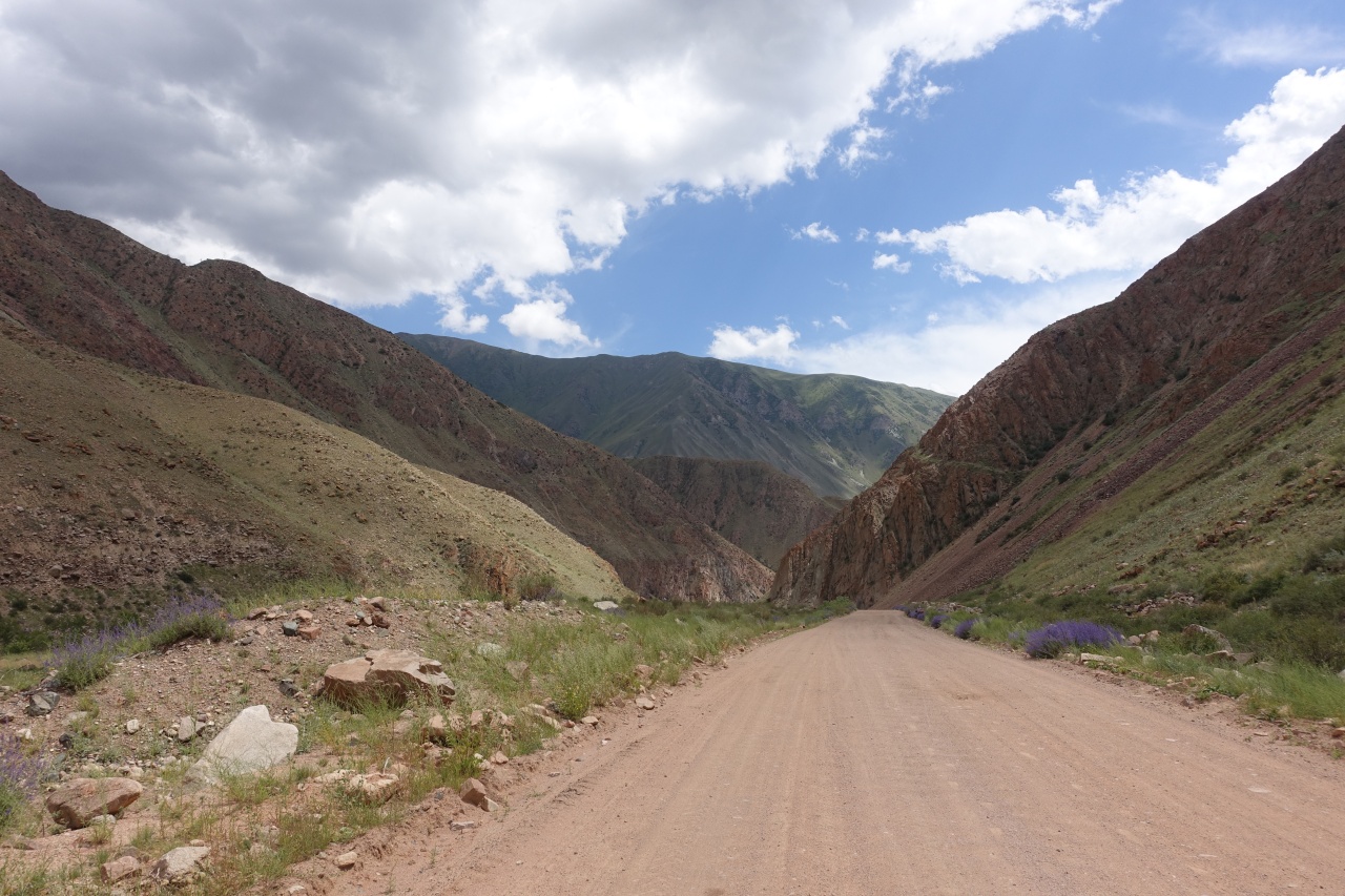 출발한지 얼마 되지 않았을 때 반대편에서 자전거 2대가 오고 있었다. 자세히보니 트레일러가 달려있었다. 아기가 타고 있었다. 그들은 네덜란트에서 온 부부로 한달 간 키르키즈스탄을 여행하고 비쉬켁으로 돌아가는 중이었다.