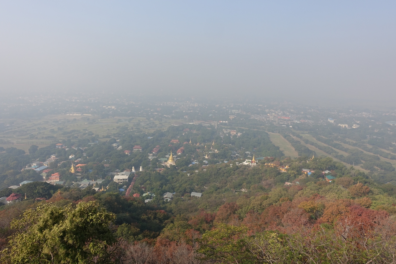 사원 아래로 만달레이 시가지가 내려다보였다. 아쉽게도 안개 때문에 선명하게 보이지는 않았다.