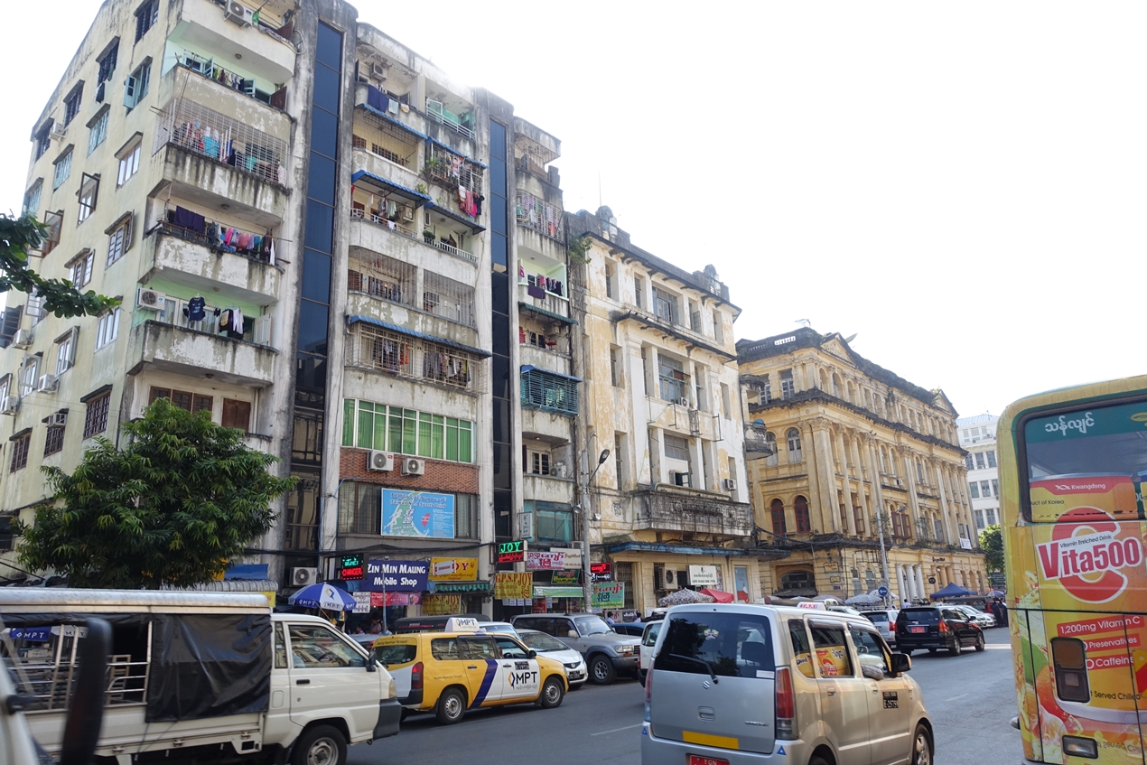 <양곤 시내, 높은 건물들이 많이 보인다>