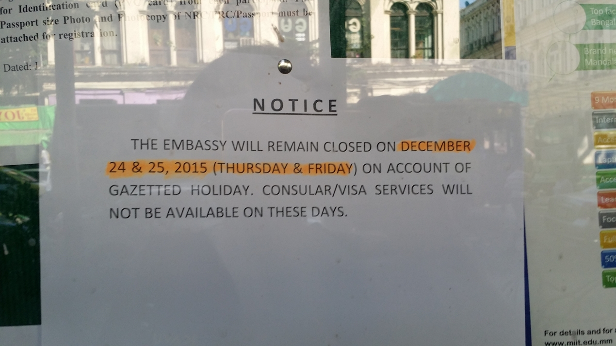 <주 미얀마 인도 대사관, 24일과 25일은 쉰다>