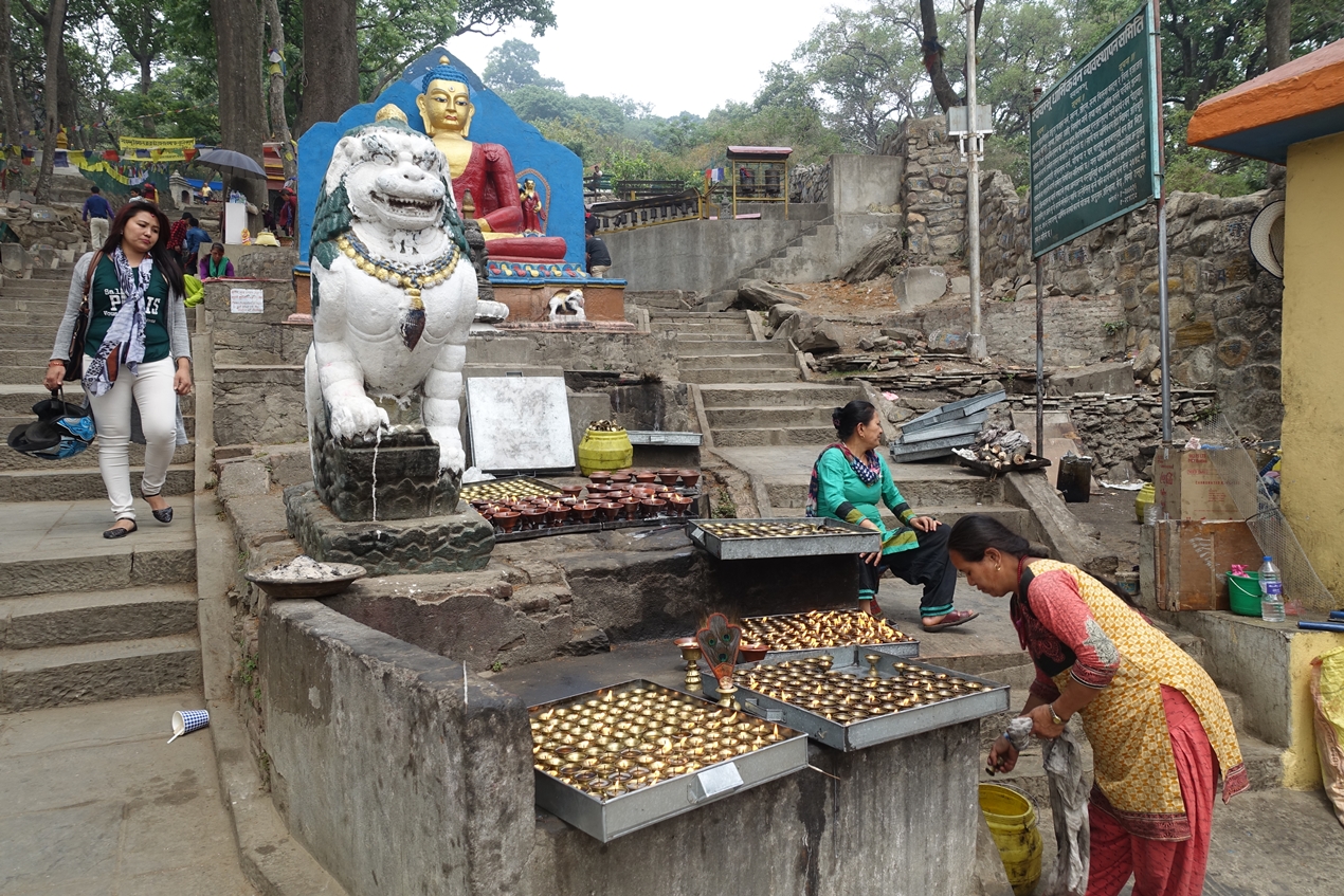 한시간 남짓을 걸어, swyambhunath temple 에 도착했다. 멀리서도 탑 일부가 보일 정도로 사원은 산 정상에 위치해있었다.