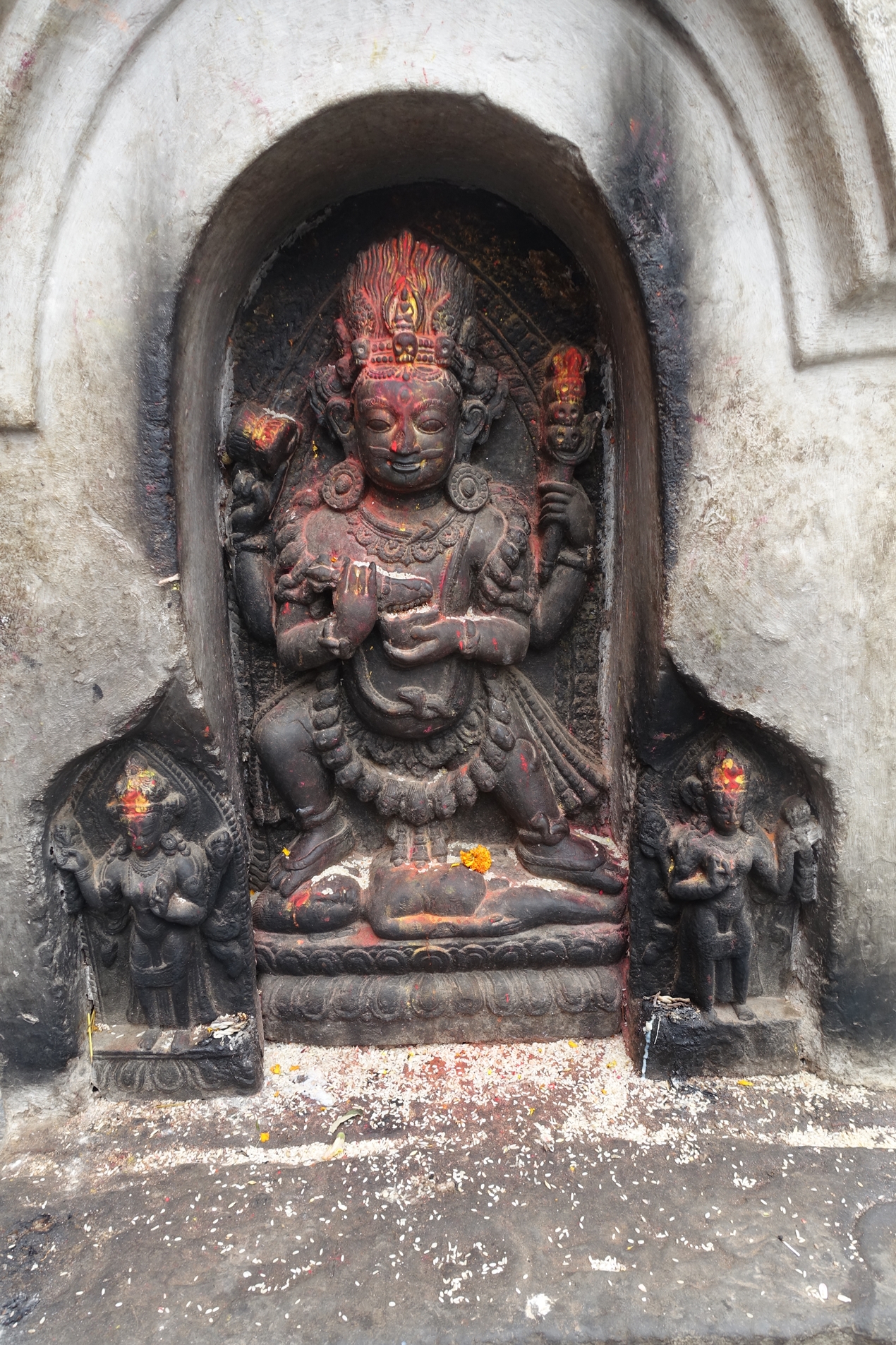 사원의 중앙에 있는 탑은 네팔에서 꽤 유명하다. 론리플래닛 네팔의 표지 사진이기도 하다.