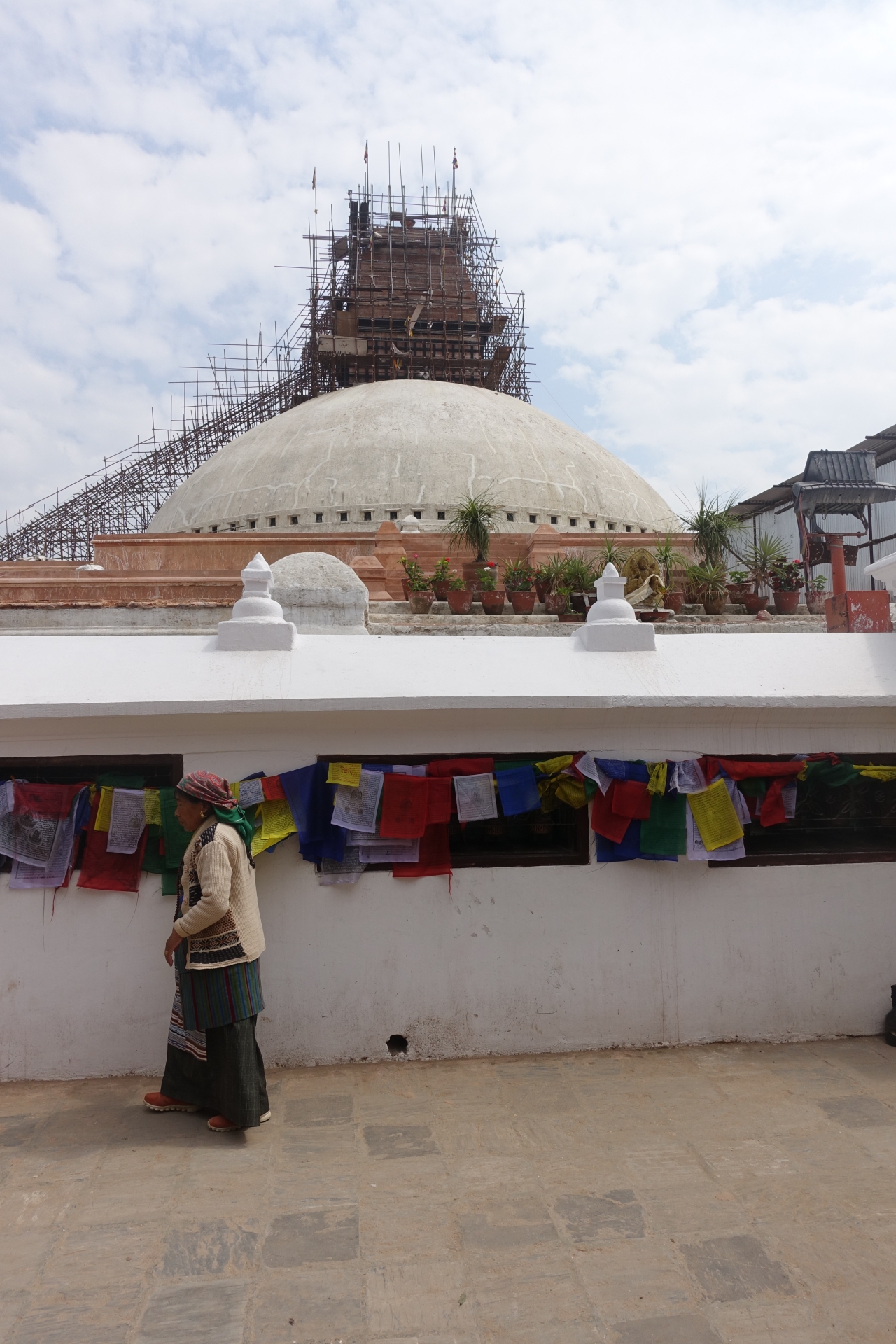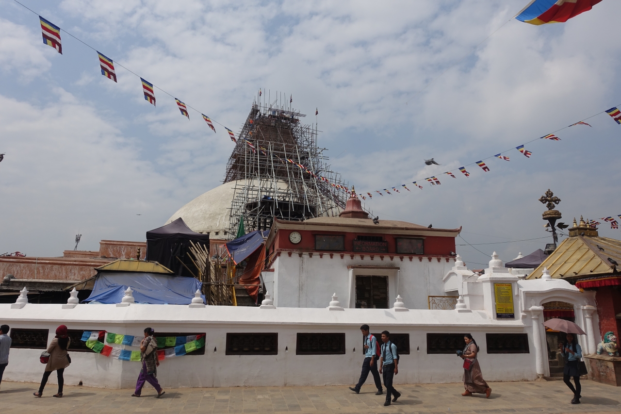 먼저 bodhnath 를 찾았다. 원 모양의 사찰 중심에 탑이 있었다. 하지만 아쉽게도 보수 공사 중이라 탑의 형태만 알아볼 정도였고, 탑의 중간부터 가장 윗부분은 볼 수 없었다.