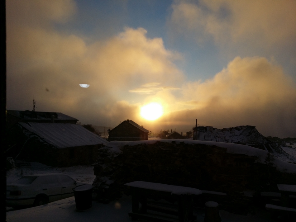 날씨가 좋았으면 일출을 볼 수 있었을 텐데. 시간이 지나면서 또다시 눈이 내렸다. 제설차량이 지나간 도로쪽은 빙판이 되어 미끄러웠다. 어쩔 수 없이 눈 쌓인 곳으로.