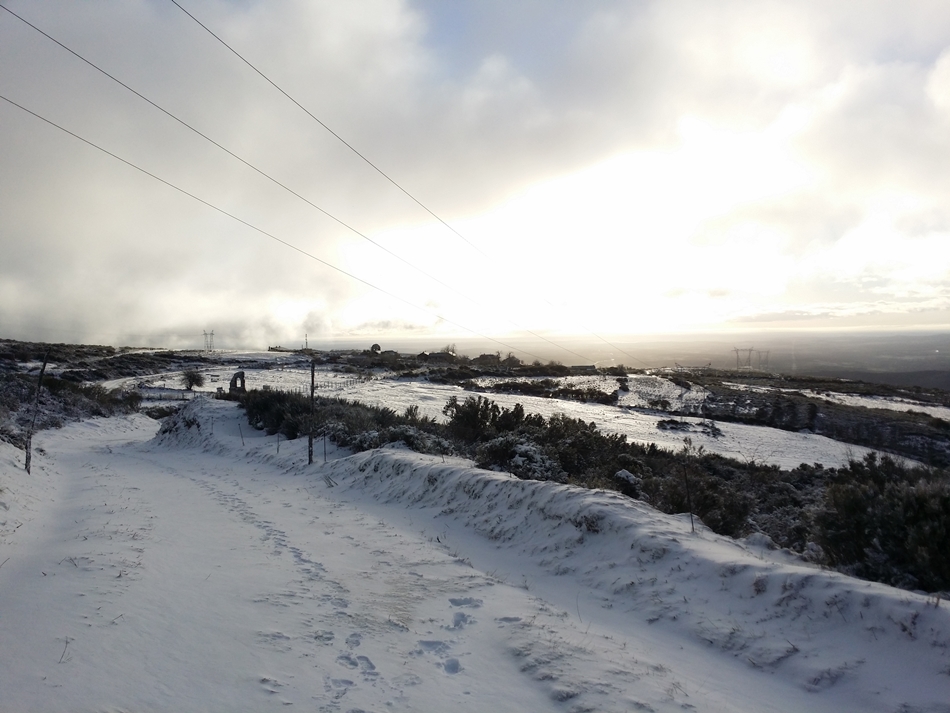 오늘 걸었던 길이 힘들기만 했던 건 아니었다. 구름이 거치자, 저 멀리 보이는 설산과 눈 덮힌 숲, 그리고 저 아래 폰페라다가 보였다.