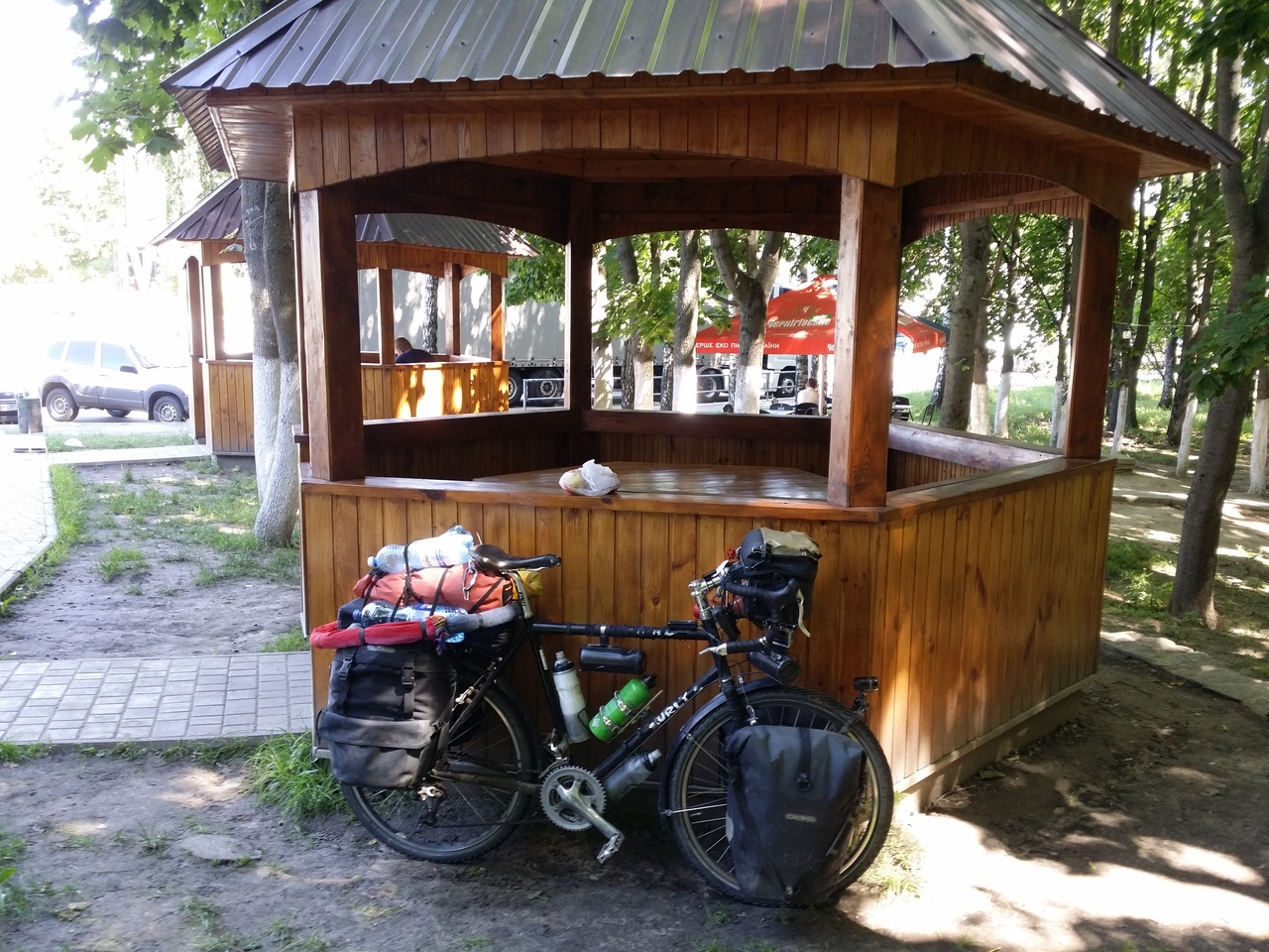 숙박비를 지불하고 남은 돈을 환전하기 위해 5km 정도 떨어진 마을에 갔다. 400흐리브냐를 900루블로 환전하고 남은 잔돈으로 부식을 샀다. 중심에 있는 성당을 둘러보고, 돌아오는 길에 강에서 수영하는 사람, 옆에서 썬탠하는 사람들을 봤다.