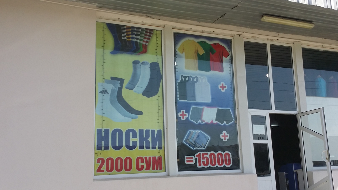 주유소로 가는 도중에 한 현수막을 봤다. 대부분의 현수막은 이곳 언어로 쓰여져 있기 때문에 이해를 하지 못했지만, 이곳은 달랐다. 양말 한켤레가 2000 솜, 티셔츠 3장에 15000 솜.