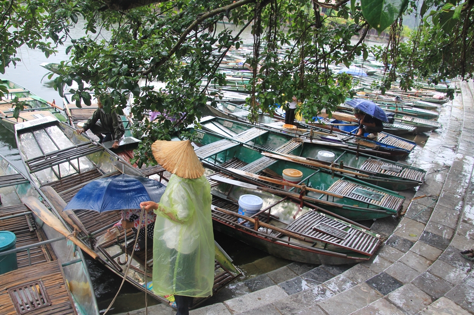 오후들어 찾은 곳은 땀꼭이다. 이 곳 역시 보트 투어로 유명한 곳이다. 앞서 짱안 보트 투어를 한 덕에 이곳에서는 타지 않고, 멀리서 지켜보는 걸로 대신했다. 비가 오는 날씨 임에도 꽤 많은 사람들이 보트를 타려 기다리고 있었다.